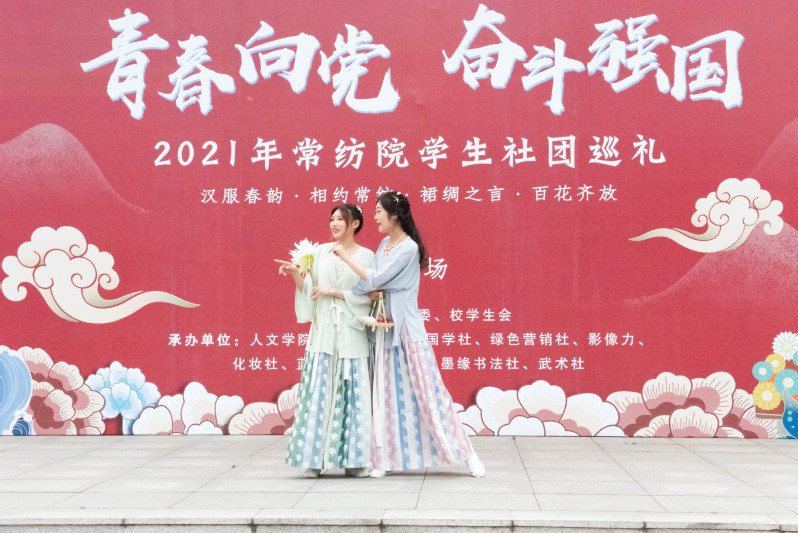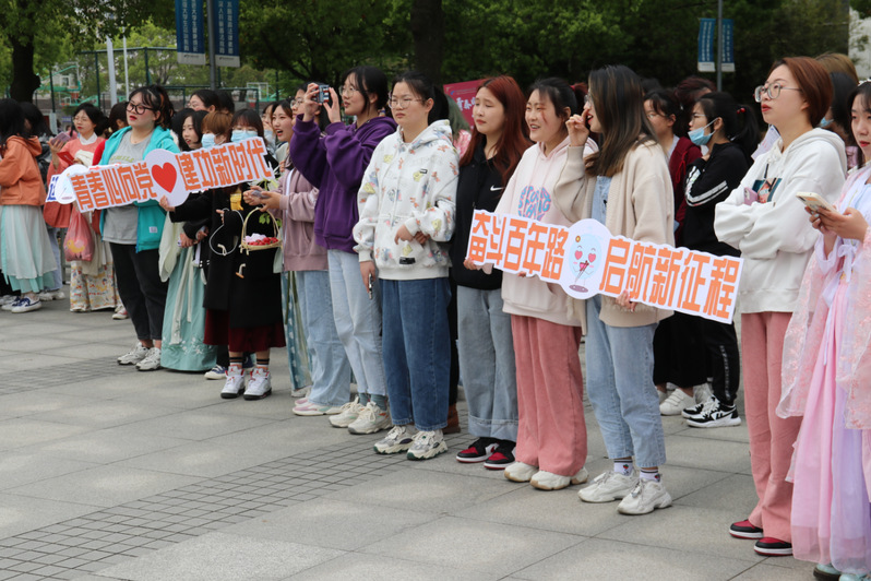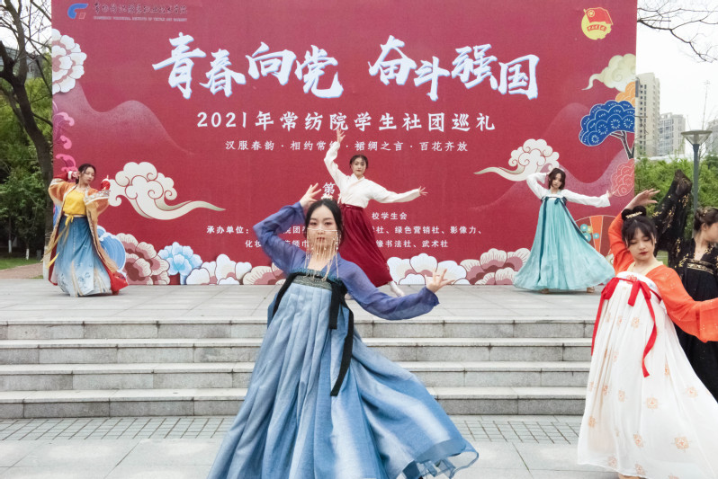 为鼓励青年学生传承传统服饰文化,弘扬传统文化精神,坚定文化自信,在校园内营造庆祝中国共产党成立100周年的浓厚氛围,塑造常纺美育品牌,4月14日下午,永利官网迎接中国共产党成立100周年专项学生社团巡礼暨“汉服春韵,相约常纺;裙绸之言,百花齐放”中国华服日展示活动在创美广场举行。党委书记吴访升来到现场和同学们一起观摩活动。党委委员、副院长张震宇,党委委员、党委宣传部部长夏斌,党委学生工作部部长李洁琦,团委书记李凯,人文学院党总支书记顾明智及各二级学院党总支副书记、团委书记,社团指导教师代表参加了开幕式。此次社团巡礼活动吸引了近1000名同学热情参与。