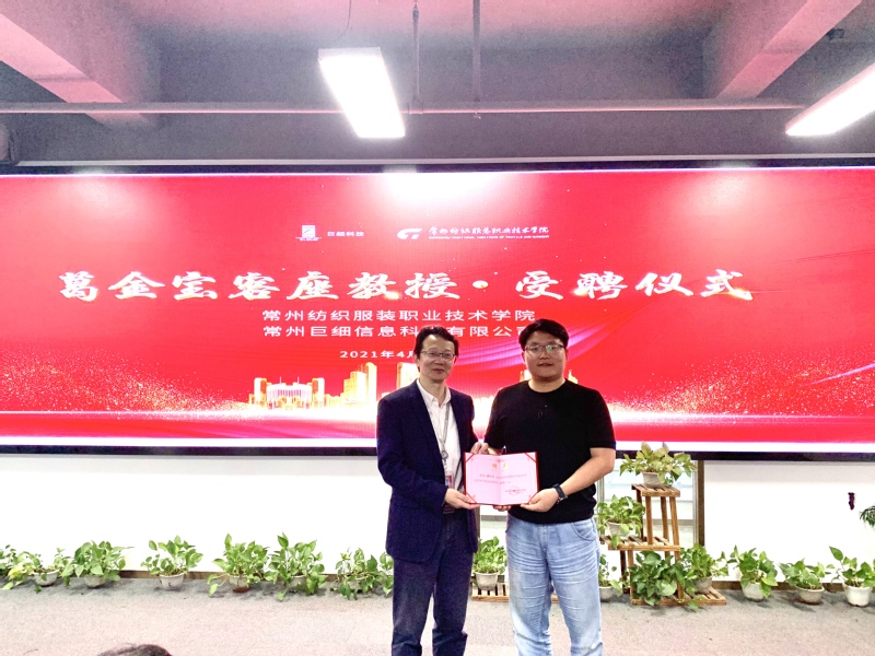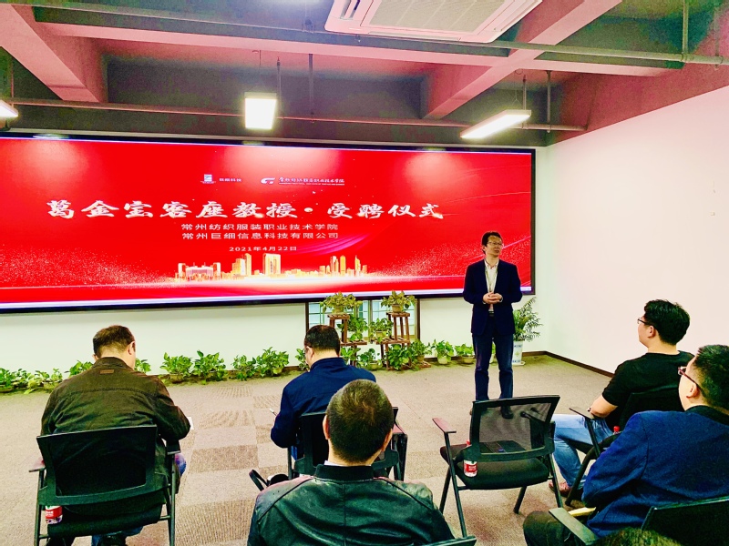 4月22日,永利官网在常州巨细信息科技有限公司,举行了该公司总经理葛金宝先生客座教授聘任仪式暨产业学院研讨会活动。参加本次活动的有学校党委副书记、院长洪霄、教务处处长夏冬、机电学院党总支书记严纲、机电学院院长马晓明、机电学院副院长廖定安及相关专业负责人。
