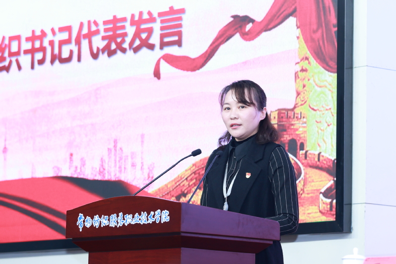 创意学院党总支书记周妍、后勤保障部直属党支部书记管俊洛分别作了表态发言。