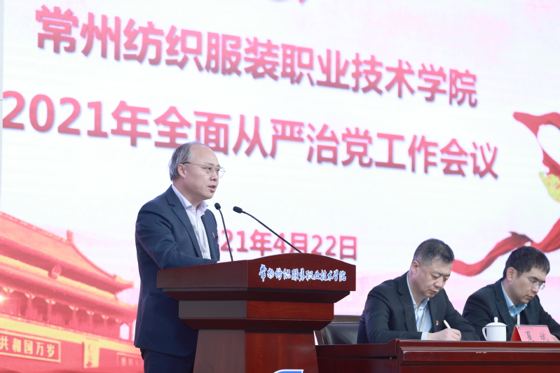 党委书记吴访升在会上作了题为《全面从严管党治校,引领提质培优增效》的讲话。他指出,2021年是实施“十四五”规划、开启全面建设社会主义现代化国家新征程的第一年,是中国共产党成立100周年。在建设高水平高职院校的新征程中,离不开更加坚强有力的管党治党成效和纪律作风保障。就深入推进2021年学校全面从严治党工作,他提出三点要求:一是聚焦立德树人,强化责任担当,发挥全面从严治党引领保障作用。要求完善制度规范,着力增强“治理”能力;抓好“关键少数”,加强干部队伍建设;健全责任体系,构建责任落实共同体;坚持底线思维,维护学校稳定安全大局;二是聚焦巡视整改,实施标本兼治,助力全面从严治党取得扎实成效。要求注重立行立改,集中打好攻坚战;强化责任担当,集中打好歼灭战;坚持标本兼治,集中打好持久战;三是聚焦政治建设,提升政治三力,推动全面从严治党向纵深发展。要求在强化理论武装中补足“精神之钙”,提升政治判断力;在党内政治生活中加强“党性锻炼”,提升政治领悟力;在发扬斗争精神中做到“四个敢于”,提升政治执行力。