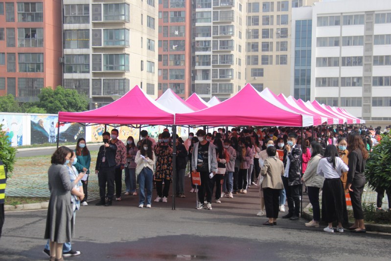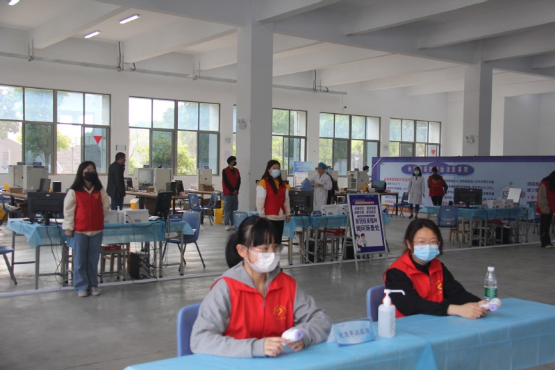 在校疫情防控领导小组统一部署下,学校各部门、二级学院密切配合,精心完成疫苗接种动员宣传、人员组织、流程制定、场所布置等各项工作,并组织50余名志愿者参与现场引导与秩序维护。嘉泽镇成章卫生院组建了一支30多名医务人员队伍,参与此次接种工作。接种工作从4月28日至4月30日,为期三天,接种的重点人群为18周岁到59周岁且符合条件的在校师生。