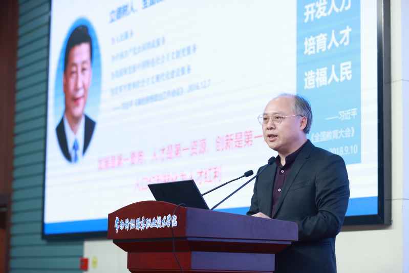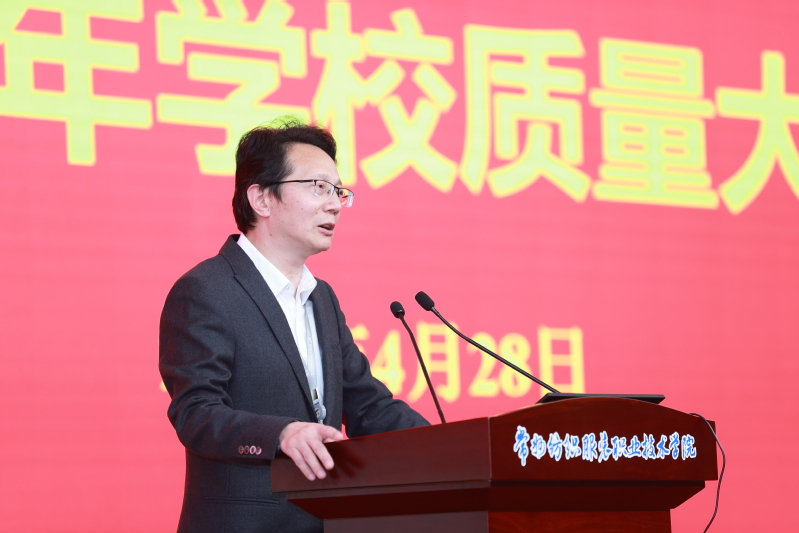 党委书记吴访升围绕“聚焦质量,找准短板,找对方法”主题,作了题为《办党和人民满意的高职教育》专题报告。报告分为四部分:一是学习思想,提高站位,厘清健康发展的新瓶颈;二是转变观念,准确识变,把握职业教育的新格局;三是解放思想,科学应变,构建协同育人的新机制;四是统一思想,主动求变,探索改革创新的新路径。他强调,全校教职工要进一步凝聚共识,把思想、认识和行动统一到立德树人的根本任务和全面提升人才培养质量的要求上来,办党和人民满意的高职教育。
