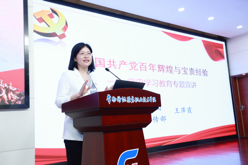 王萍霞以“中国共产党百年辉煌与宝贵经验”为题,用渊博的党史学识、翔实的党史资料、感人的党史故事,从中国共产党的鲜明特征、中国共产党百年光辉历程、中国共产党带领中国社会发生的巨变等视角追根溯源,从历史和现实的维度系统回顾了中国共产党波澜壮阔的浴血奋战史、艰苦创业史、改革开放史,全面梳理了中国共产党在新民主主义革命、社会主义革命和建设、改革开放新时期及十八大以来的百年奋斗史和历史性贡献,揭示了中国共产党人不忘初心和使命的历史之源及历史实践,深入阐述了如何深刻把握党史学习教育的重点。