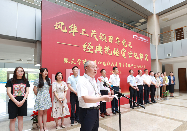 最后,吴访升致辞并宣布开幕,他代表学校对本次活动的顺利举行表示热烈的祝贺,并表示,100年来,中国共产党经历了革命时期血与火的考验,领导中国人民走过了波澜壮阔而又艰难曲折的奋斗历程,取得了举世瞩目的辉煌业绩,百年服饰发展史,见证了祖国的进步和民族的复兴。他希望全体服装人以百年服饰变迁为线索,用艺术形式生动展现中国共产党成立百年辉煌历史,以自信的心态、开放的胸襟、饱满的热情、昂扬的斗志、创新的理念和拼搏的精神,传承红色基因,坚定理想信念,以立德树人为根本,继承和发扬党的光荣传统。凝心聚力、勇往直前,推动学校事业蓬勃发展。