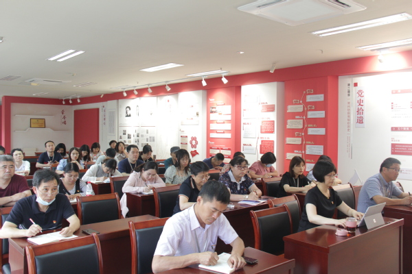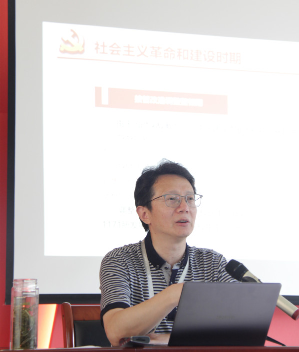 在中国共产党成立百年之际,6月25日下午,党委副书记、院长洪霄在学校党性教育主题教室,为经贸学院全体教师讲授党史学习教育专题党课,党课由经贸学院党总支书记胡艳妹主持。