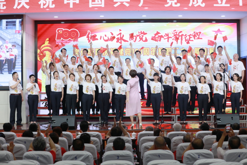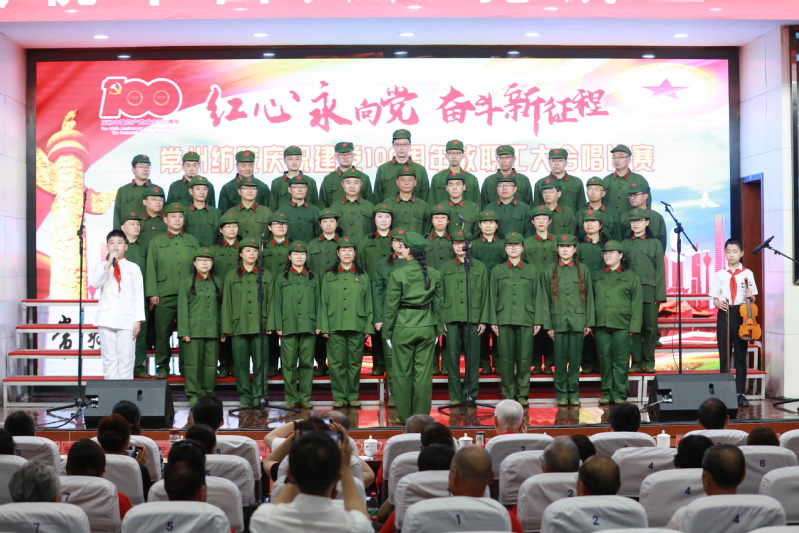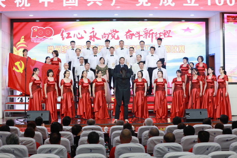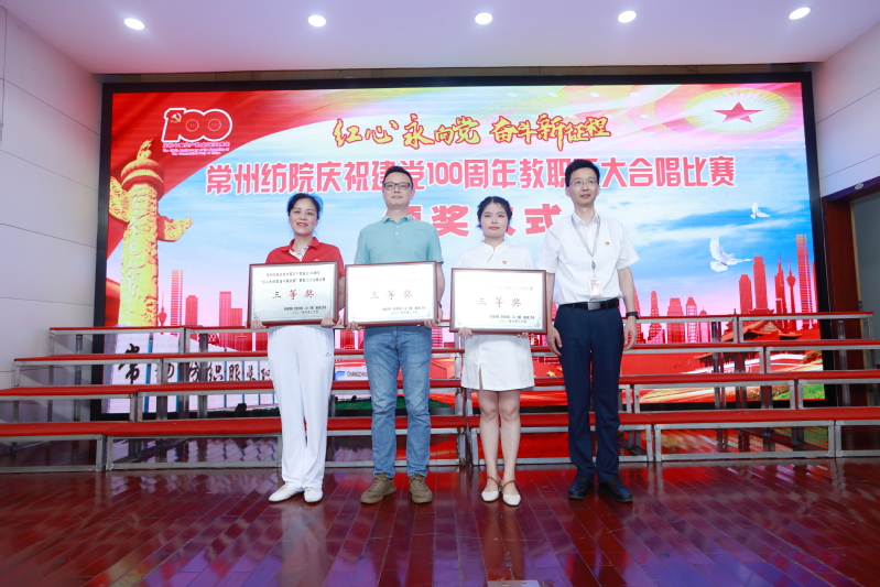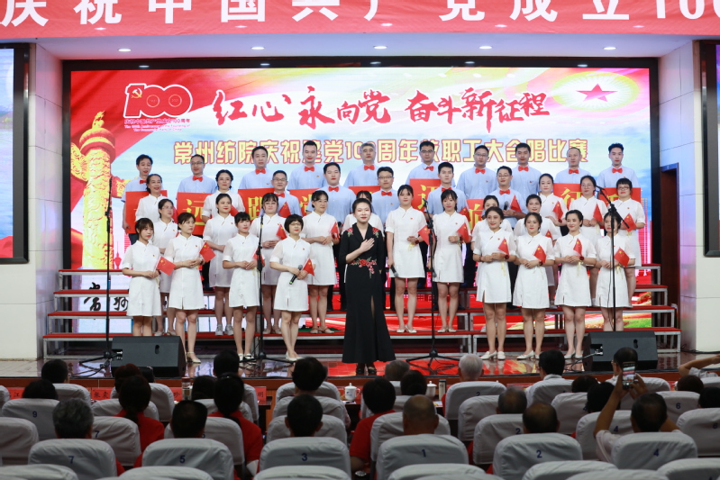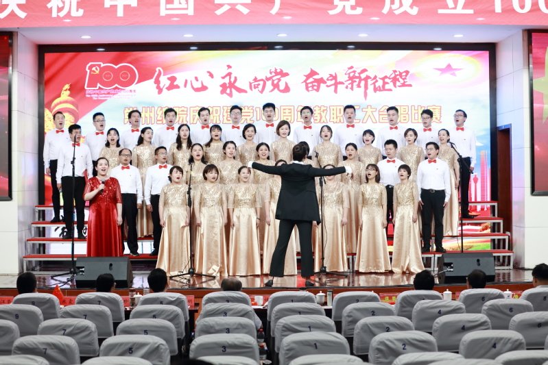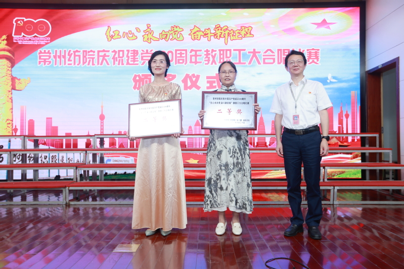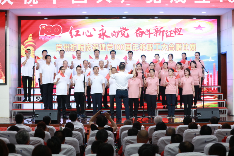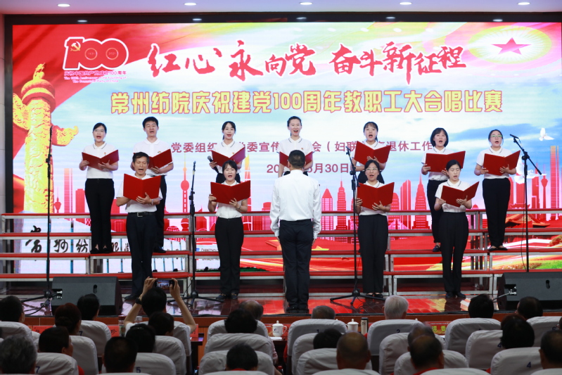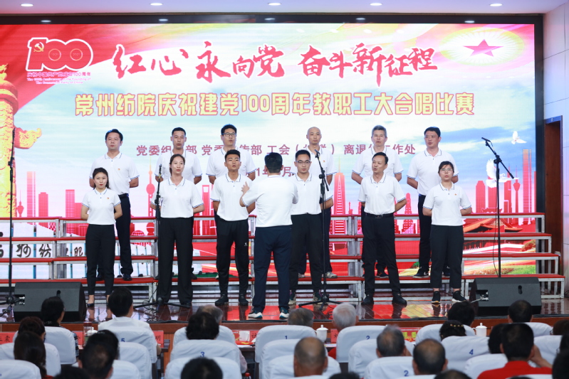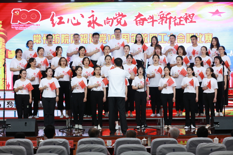 随后,进行了“红心永向党 奋斗新征程” 教职工大合唱比赛。本次比赛共有12支来自各党总支和直属党支部参赛队伍,近500名教师用最嘹亮的歌声庆祝中国共产党成立100周年,用最真诚的心祝福伟大祖国繁荣富强。经过一番激烈角逐,离退休教师代表队获得一等奖,纺织学院代表队和创意学院代表队获得二等奖,经贸学院代表队、机电学院代表队、人文学院代表队获得三等奖,后勤保障部代表队、马克思主义学院代表队、体育部代表队、服装学院代表队、机关代表队、图信代表队获得优秀奖。最后,在全体合唱《没有共产党就没有新中国》的歌声中,活动落下帷幕。