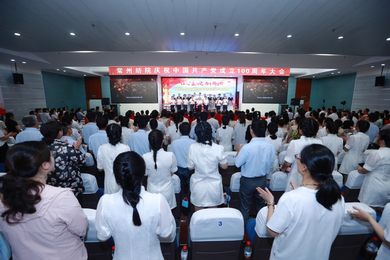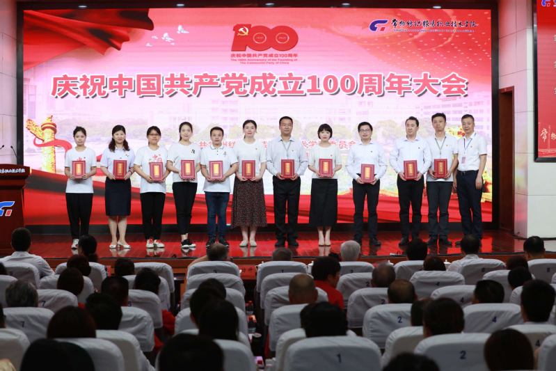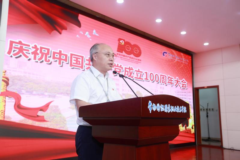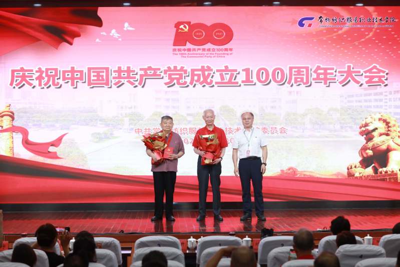 党委书记吴访升作主旨讲话,他回顾了中国共产党走过的100年光辉历程,从播下革命火种的小小红船,到领航复兴伟业的巍巍巨轮,在百年奋斗历程中,我们党领导全国各族人民取得了从站起来到富起来再到强起来的举世瞩目辉煌成就。他指出,有着63年办学历史的常纺院,在党的教育方针指引下,一代代常纺人坚持“为党育人、为国育才”的初心使命,秉承“进德、立业、敏学、笃行”的校训,学校不断发展壮大。学校的办学实践证明,只有坚持党的全面领导、加强党的建设是学校事业发展的根本保证。当前学校正面临新的发展机遇和挑战,他要求全体党员、干部做到:一是铭记光辉历史,坚定理想信念,主动扛起立德树人的责任和使命。用实际行动筑牢“四个意识”,坚定“四个自信”,做到“两个维护”。要把习近平新时代中国特色社会主义思想作为推动学校干事创业的行动指南。履行好管理育人、服务育人、教书育人的主体责任; 二是聚焦未来发展,锚定使命愿景,自觉融入改革创新的行动和实践。学校提出了“共创美丽,引领时尚”的办学使命和建设“现代化、国际化、智慧型、创业型”高水平高等职业院校的奋斗目标,必须紧紧围绕聚焦“一带一路”、“质量强国”、“长三角区域一体化”三大战略,坚持党建、文化、标准三个引领,打造产教融合、技术创新、国际合作三个平台,建设卓越工匠人才培养、技术技能创新、优质服务供给和中华优秀传统文化传承创新“新高地”,打造高职院校美育、“双创”教育改革示范和治理能力与治理体系现代化“常纺样板”,为苏锡常都市圈职业教育改革创新发展提供“常纺智慧”;三是加强党性修养,锁定培根铸魂,始终保持共产党人的品格和风范。要始终坚守对党和人民的政治承诺,要做到崇尚对党忠诚的大德,要崇尚造福人民的公德,崇尚严于律己的品德。服务好学生的终身发展,做新时代“四有”好教师、好干部。最后他强调,全校各级党组织和全体教职员工,一定要认真学习、深刻领会、全面贯彻习近平总书记明天在党中央庆祝中国共产党成立100周年大会上的重要讲话精神,不断加快学校各项改革和事业发展,共同创造常纺院更加灿烂的明天!