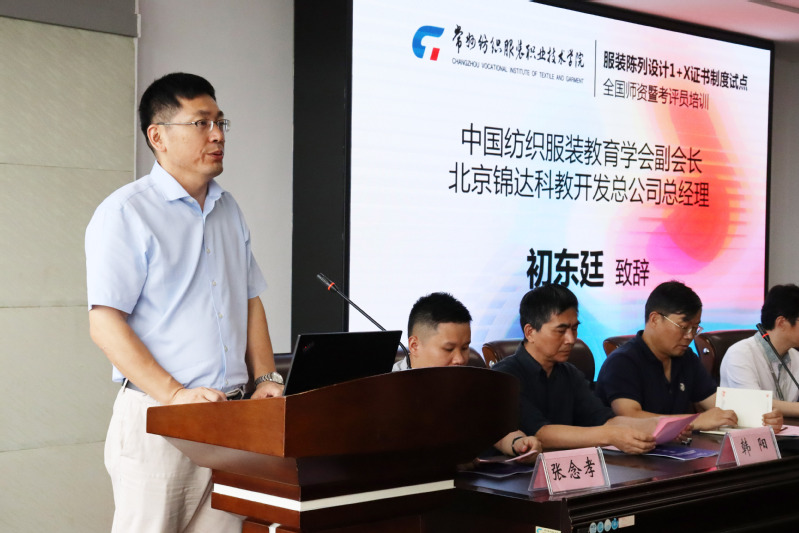 7月5日上午,2021年服装陈列设计1+X证书制度试点全国师资暨考评员培训班开班典礼在永利官网7401会议室隆重举行。中国纺织服装教育学会常务副会长倪阳生、北京锦达科教开发总公司总经理初东廷、中国服装设计师协会陈列委员会主任委员温州大学教授韩阳、海澜集团有限公司招聘部部长居江、上海热风时尚发展有限公司华东大区副总经理张念孝,我院党委副书记、院长洪霄、副院长张文明、服装学院党政、服装陈列与展示教研室老师以及来自全国35所院校、64名专业骨干教师出席会议。会议由服装学院副院长潘维梅主持。