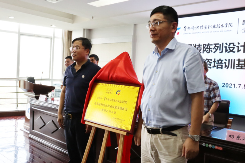 最后,张文明副院长和初东廷总经理共同为永利官网服装陈列设计“1+X”证书师资培训基地进行揭牌。