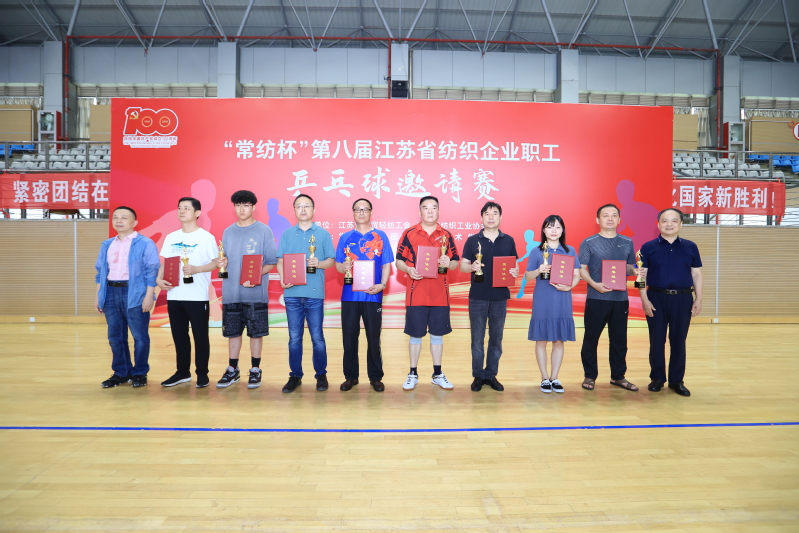 7月9-11日,“常纺杯”第八届江苏省纺织企业职工乒乓球邀请赛在永利官网体育馆举办。今年是中国共产党成立100周年,江苏省纺织工业协会、江苏省财贸轻纺工会为深入贯彻习近平总书记全面落实“健康中国”和“全民健身”的国家战略,弘扬全民健身理念,丰富群众性文化体育活动,促进纺织企业单位的交流与发展,不断增强职工身体素质,展示全省纺织职工的精神风貌,特举办本次比赛。来自全省纺织企业的19支代表队120余名运动员参加,参赛队伍规模为历届之最。本次活动由永利官网承办。