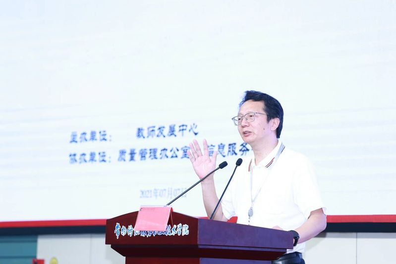 党委副书记、院长洪霄宣布学校内部质量保障体系建设工作正式启动!他在总结讲话中希望全校教职员工深入学习领会报告内容,按照“诊改”的思路,结合实际工作,积极参与到内部质量保证体系建设中来,扎实有效地推进学校的内涵建设;他梳理了近3年来学校质量建设的工作,并提出了“坚定不移”“宽容成长”“互促互进”追求高质量发展等三点工作要求。