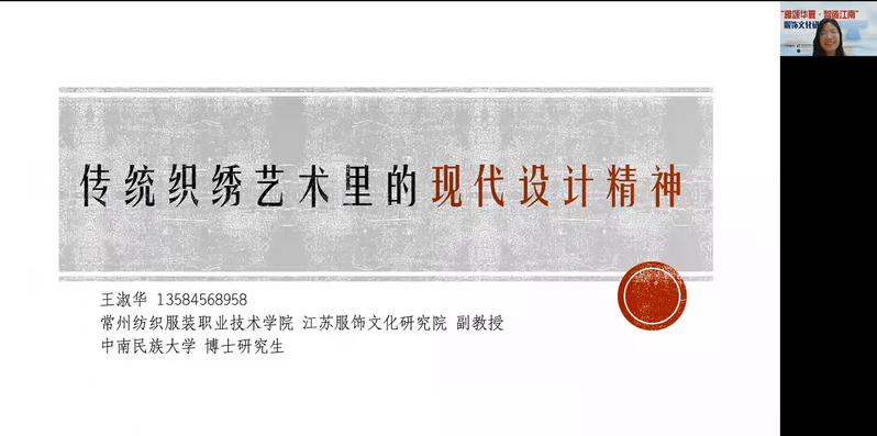 在主题报告阶段,有六位专家做了主题发言:上海纺织博物馆贾一亮副馆长的报告《博物馆资源整理与民族服饰文化传播》从“从招手到握手、从共鸣到共情、从交往到交融、从过去到现在、从现在到未来”五个方面介绍相关资源的整理与民族服饰文化的传播;西安美术学院张西昌博士、副教授的报告《苏绣创作的新倾向及问题》从非遗保护语境中的刺绣角色、苏绣从生活到市场演变、苏绣未来创作的新倾向几个方面对苏绣面临的现实问题与苏绣未来创作之路进行探讨;江苏理工学院单文霞教授的报告《传统手工拼布艺术的流变与形式研究》在诠释了拼布概念的基础上,从拼布艺术的历史渊源、拼布织物的艺术分析、拼布艺术的流变与传承对拼布艺术进行文化探源;西安工程大学刘驰博士、教授的报告《从华夏内衣演变与发展看现代内衣设计》对秦汉、唐代、宋代、元代、明代、清代、现代内衣的样式、材质、功能的演变进行分析,同时对专业发展与产业发展对接提出自己的观点;江苏理工学院黄强客座教授的报告《六朝服饰文化》对六朝妇女典型服饰及特点、服饰流行变化的影响因素进行阐释;永利官网服装学院王淑华副教授、中南民族大学博士研究生的报告《传统织绣艺术里的现代设计精神》剖析了“传统”与“现代设计”的连接桥梁,结合理论研究与设计实践对传统织绣艺术里的现代设计精神进行深思,提出了系统的探索方式和研究方法。在每位专家报告之后,永利官网师生与专家进行线上交流与讨论。六位专家的报告拓宽了服饰文化研究的视角,丰富了研究问题的方法。