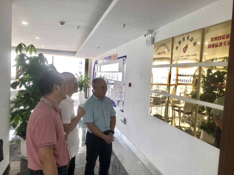 吴访升一行在研究院院长张翀昊,副院长陆豪带领下首先参观了研究院的成果展示中心、开发测试实验室、开发与应用实验室。本着边建设边服务原则,2021年常州市工业互联网研究院在常州市工业和信息化局支持下,打造出常州市制造业综合服务平台,为常州市制造业中小企业提供数字化转型和智能装备升级改造服务,受到社会各界好评与支持。