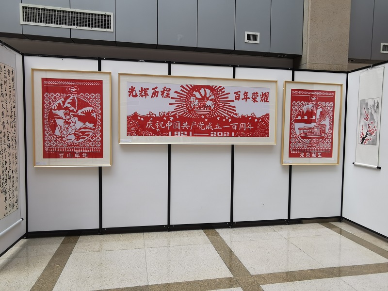 为庆祝建党100周年,关欣老师带领剪纸社的同学们开始制作非遗剪纸献礼百年华诞的艺术实践创作,记录党从诞生到发展壮大的光辉历程,用一幅幅鲜活的剪纸作品再现百年华彩盛世。用艺术形式进行党史学习,并以非遗剪纸凝聚各族人名坚守初心、不忘使命,充分发挥剪纸艺术的创作动力,树立社会主义核心价值观,积极投身于新时代精神文明建设中。