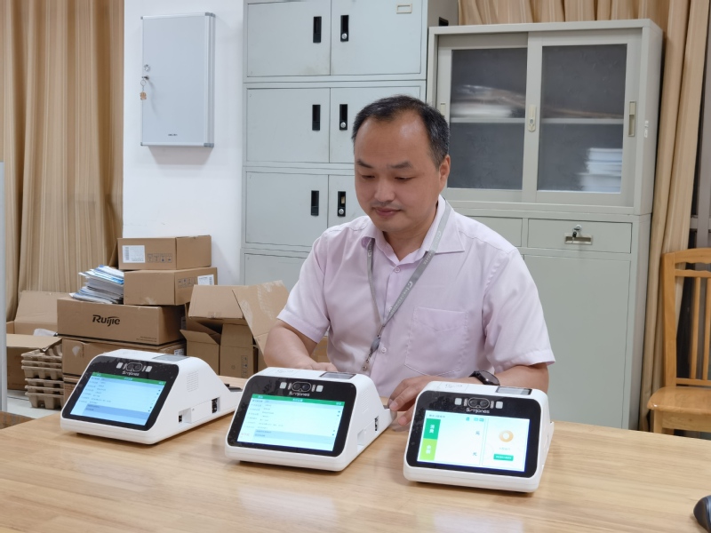 2021年8月18日暑期加班,推进校园卡升级改造项目,调试新式人脸支付POS机,将用于教工食堂,为教师餐饮支付提供最新信息化体验