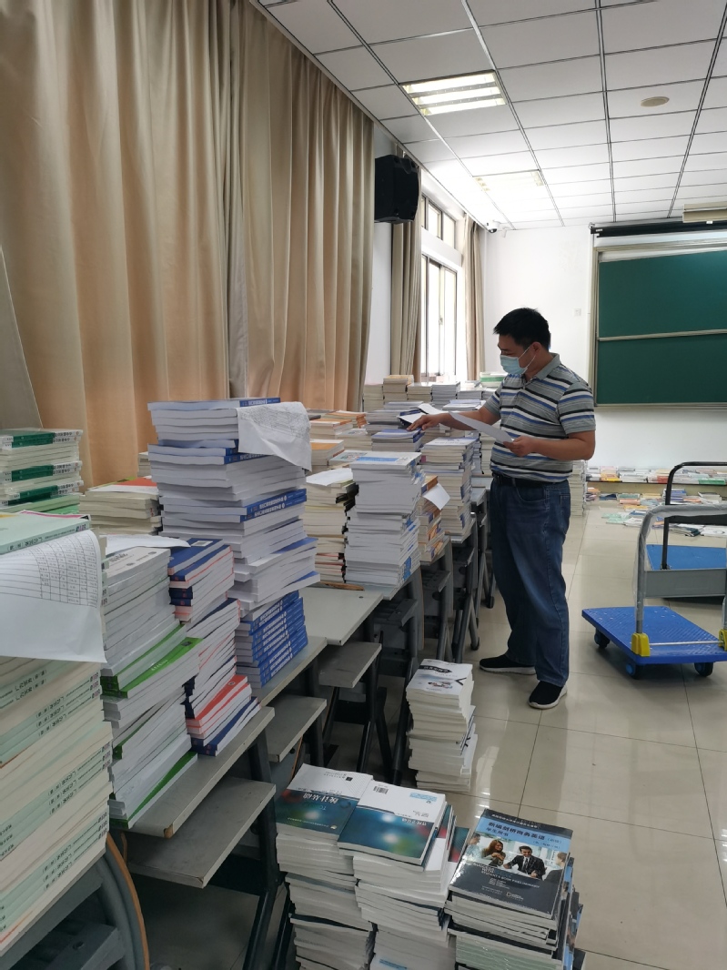 整个5月全部滞留在9号楼教室内,预约邮寄快递公司、给232个班级教材称重量、统计汇总与核对学生家庭地址、在教室里按教改要求打包公装、家装、景观、建筑表现的教材、关注教材出入校门是否顺畅,邮寄过程中损耗处理、寄送异常的联系等。