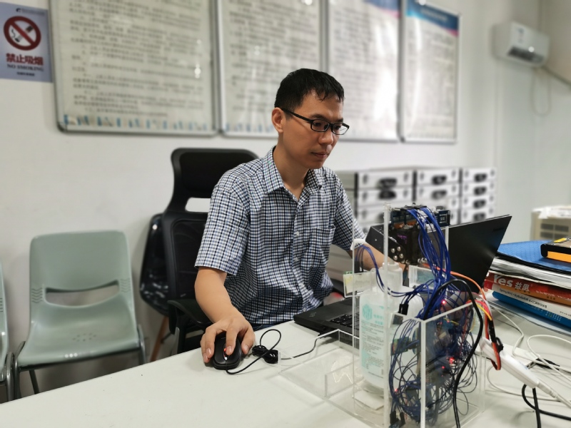 2021年5月11日,任志敏在帮助学生调试毕业设计作品