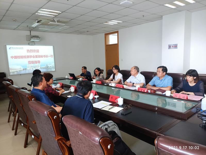 2021年9月17日上午,中国检验检测学会秘书长夏扬、技术总工刘华琳、行政总监缪霖、科普部主任徐郡一行莅临永利官网调研。永利官网党委书记吴访升、党委委员副院长张文明、教处处、科技处及纺织学院相关领导接待了来访嘉宾,双方在1730会议室召开了交流研讨会,会议由吴访升主持。