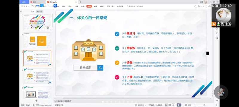 原校后勤管理处处长金钰敏老师从垃圾分类的意义引入,通过大量图片、视频生动地讲解了生活垃圾的基本分类、法律法规和制度,指出垃圾分类工作是具有法制性、全民性、科学性的一项系统工作,能实现垃圾减量化、资源化、无害化。她说,学校是常州市首个引进可回收生活垃圾智能化分类回收箱的高校,自2019年12月18日正式运行以来,受到师生们的关注,参与分类投放的热情比较高,呼吁同学们都行动起来,共同持续参与,推进生态文明,建设美丽中国。现场绿之鑫公司方师傅和创意学院2020级学生王依晴与新生们进行了线上互动,讲解、示范正确的垃圾分类和投放方法,深入浅出的讲解、通俗易懂的语言,为同学们带来了一场高质量的垃圾分类讲座。
