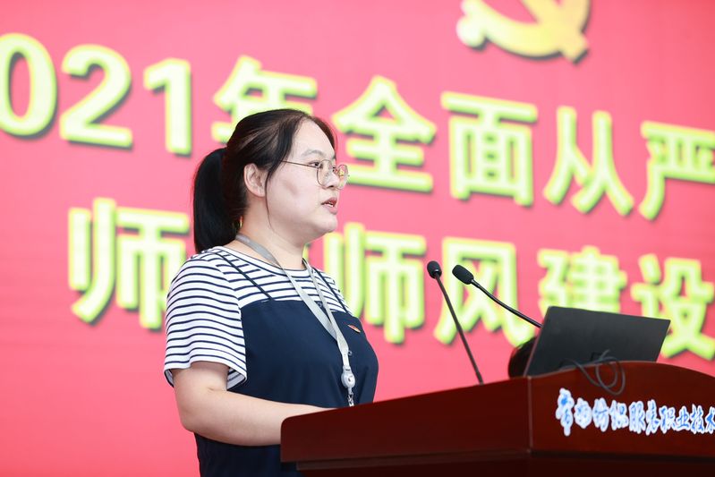 会上,人文学院教授、博士王志敏,创意学院辅导员李喜梅,纪委办主任赵培新,经贸学院党总支书记林洁做了交流发言,他们的发言感悟深刻,态度鲜明,表明了强化纪律意识和红线意识,遵守师德规范,践行高尚师德行为,为推动学校高质量发展贡献力量的坚定决心。