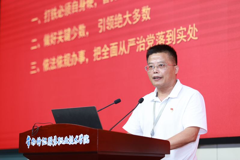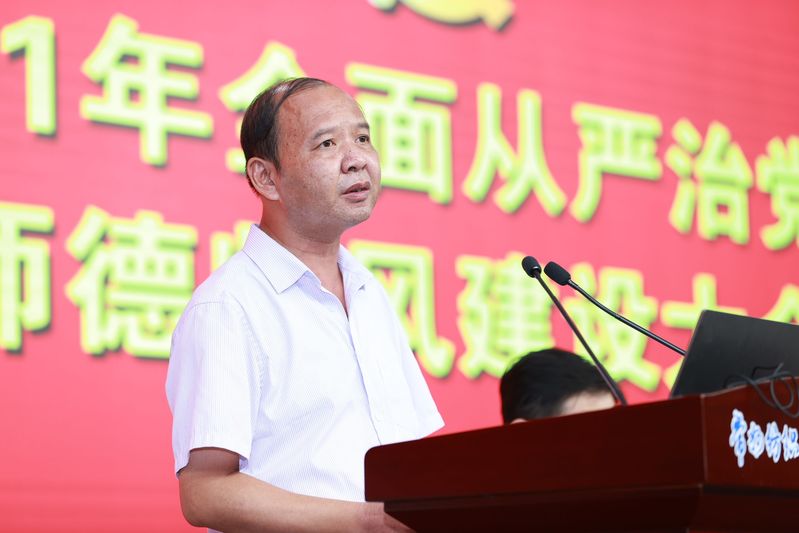 党委副书记、纪委书记王顺明在会上作《增强纪律意识,提升履职能力,共同营造学校事业发展良好政治生态》的讲话,他从增强讲政治守纪律意识,把牢教书育人根本方向;提升防风险查隐患能力,夯实履职尽责工作基础;筑牢群众观权力观根基,铸炼担负时代重任本领三个方面提出了继续落实全面从严治党、推进党风廉政建设的要求。他要求全体党员、教师要坚守入党初心、从教本心,讲政治、防风险、强本领,响应党中央、习近平总书记的号召,同人民想在一起、干在一起,风雨同舟、同甘共苦,持续塑造风清气正的校园政治生态,不断推进学校更快更好向前发展,在现代化新征程上建新功。