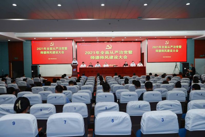 9月29日下午,永利官网召开2021年全面从严治党暨师德师风建设大会,深化落实管党治党责任,加强师德师风建设,以全面深化从严治党工作为学校贯彻党的教育方针、落实立德树人根本任务、推进高水平建设、抓好“十四五”开局提供坚强的政治保证。全校教职工参加大会。全体校领导、党委委员、纪委委员、中层干部、各党总支(直属党支部)委员、各党支部书记、各二级学院教师代表在图文报告厅主会场参会,其他教职工分别在各二级学院会议室、直属党支部会议室、大学生活动中心分会场观看直播。大会由党委副书记、院长洪霄主持。