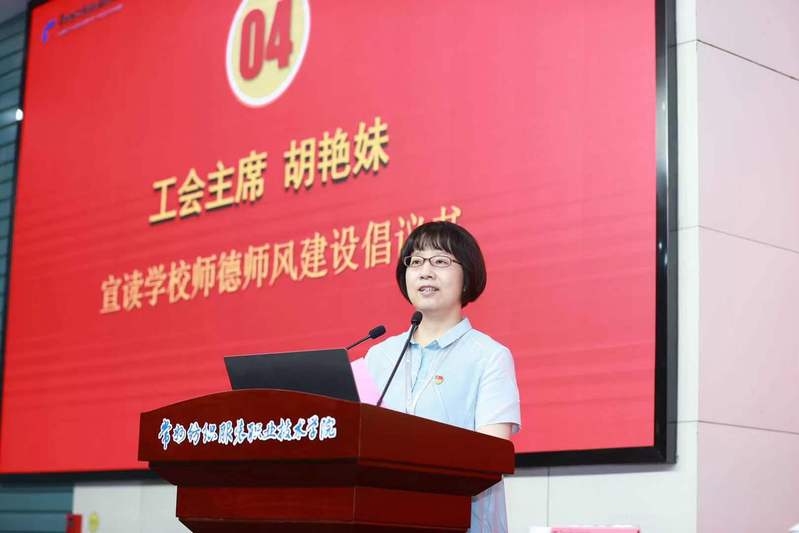 工会主席胡艳妹宣读学校师德师风建设倡议书