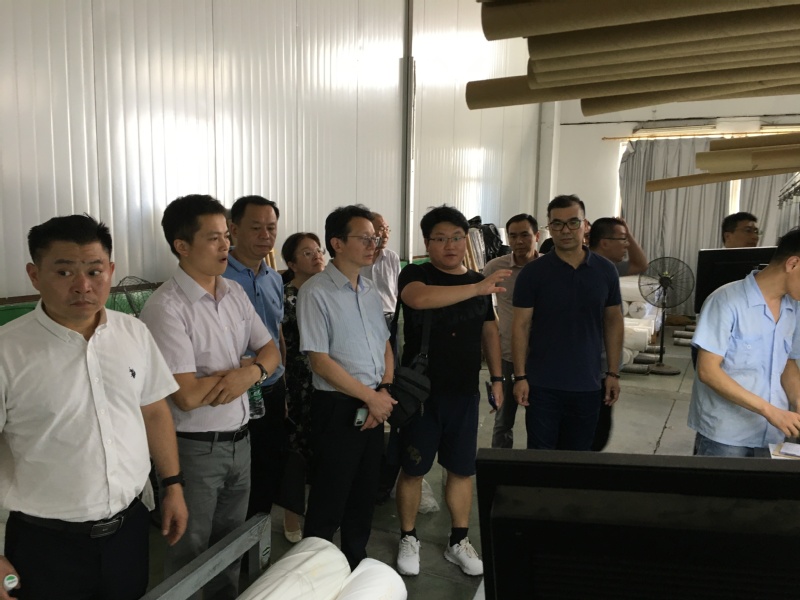 接下来,洪霄一行在葛总的陪同下参观了南华纺织,了解了整经、浆纱、穿纱、织布等工艺流程;参观了福华世家,详细了解了验布机等纺织设备。
