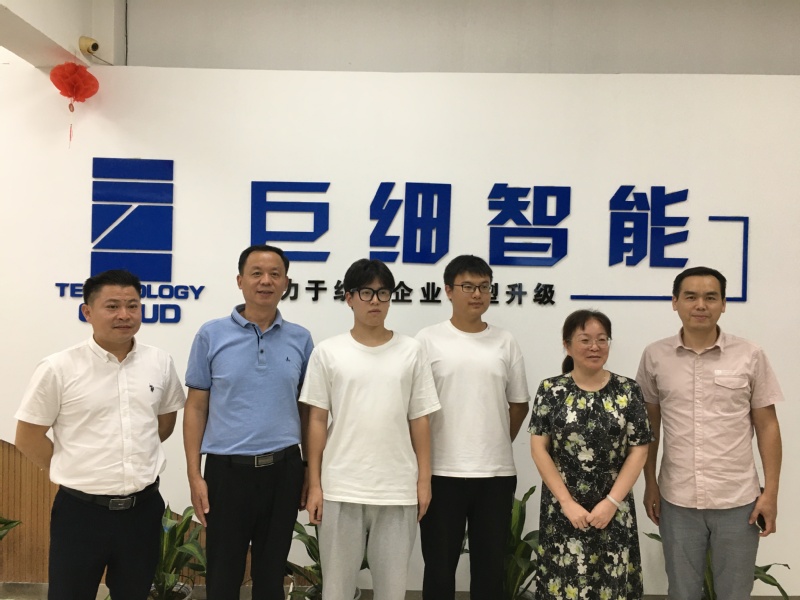 随后,洪霄一行来到了巨细科技,公司总经理葛金宝详细介绍了公司将要打造的三大生态板块,接下来,机电学院党政班子和相关专业负责人就当前巨细科技正在与机电学院对接的大数据智能织造实训基地建设项目进行了深入交流,洪霄表示要加快项目推进速度,制定工作推进时间表,尽快提交实训基地建设效果图。