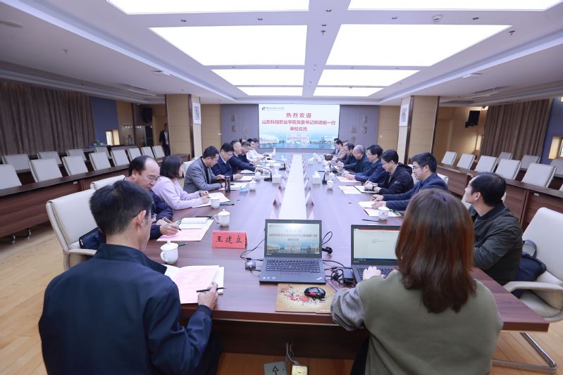 10月28日下午,山东科技职业学院党委书记郑德前一行10人莅临永利官网调研交流。永利官网党委书记吴访升,党委副书记、院长洪霄,党委副书记、纪委书记王顺明,党委委员、副院长邓凯、张震宇,党委委员、组织部部长高江荣,党委委员、宣传部部长夏斌,党政办公室主任赵振勇,财务处处长敬丽华,教务处副处长许晓宇,机电学院副院长刘宏泉出席了调研交流会。