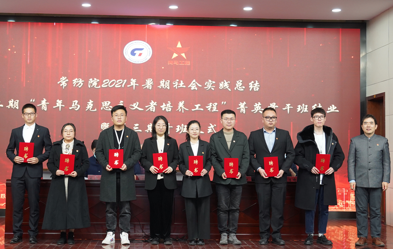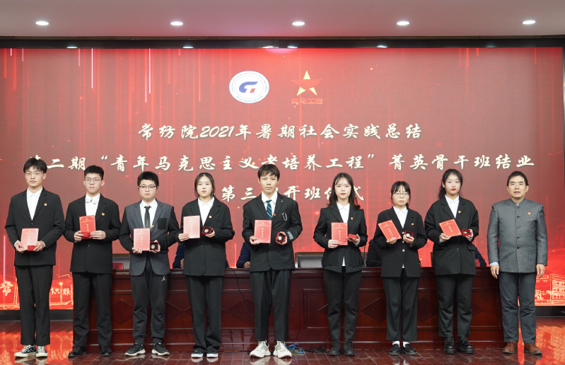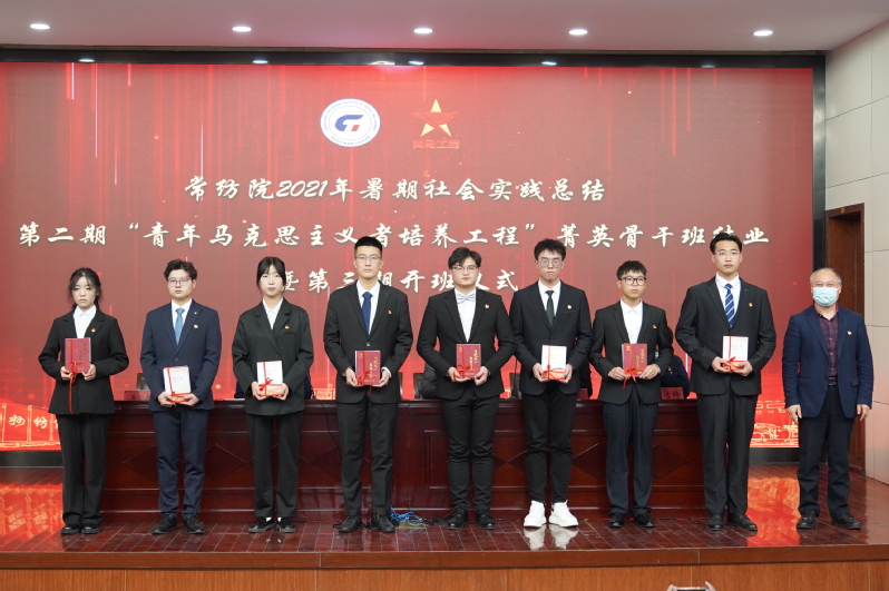 开班仪式在庄严的国歌声中正式拉开帷幕。党委学工部部长李洁琦宣读了《关于表彰2021年大学生暑期“三下乡”社会实践活动优秀团队、先进工作者、先进个人、优秀调研报告的决定》,党委委员、党委宣传部部长夏斌为获奖代表颁发荣誉证书及奖杯。党委委员、党委组织部、统战部部长高江荣宣读《关于准予2020年“青年马克思主义者培养工程”菁英骨干班学员结业和表彰优秀学员的决定》及《关于聘任2021年“青年马克思主义者培养工程”菁英骨干班导师的决定》,张震宇向第二期“青马工程”学员代表颁发结业证书,向优秀学员代表颁发荣誉证书、授予“青马优秀学员”奖章;为督学辅导员颁发聘书。