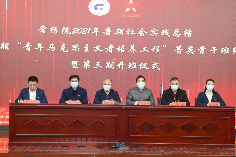 为深入贯彻学习习近平新时代中国特色社会主义思想、习近平总书记在庆祝中国共产党成立100周年大会上的重要讲话精神及党的十九届六中全会精神,使党的事业薪火相传,切实发挥“青马工程”为党育人的政治功能,着力为党培养和输送一批具有忠诚的政治品格,浓厚的家国情怀,扎实的理论功底,突出的能力素质,忠恕任事、人品服众的青年政治骨干,11月25日下午,永利官网2021年暑期社会实践总结及第二期“青年马克思主义者培养工程”菁英骨干班结业暨第三期开班仪式在图文报告厅举行。学校党委书记吴访升,党委委员、副院长张震宇,相关党群部门,各二级学院领导、分团委书记,“青马工程”培训班全体学员、督学辅导员,2021年暑期社会实践先进集体及个人代表参加了开班仪式。会议由团委书记李凯主持。