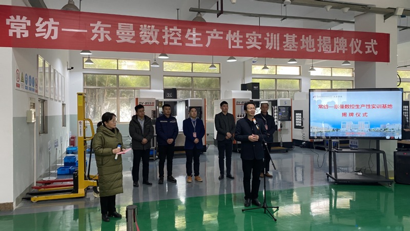 12月16日13点30分,常纺-东曼数控生产性实训基地暨教师企业实践流动站揭牌仪式在机电学院2B108隆重举行,东曼精密机械厂总经理王闯、生产经理孙国庆,学校党委副书记、院长洪霄,学校党委委员、副院长张震宇,教务处处长夏冬,人事处副处长侯喜军,校企合作处副处长许晓宇、科长严美娴,机电学院党政班子、教师代表、学生代表出席仪式,活动由机电学院院长肖海慧主持。