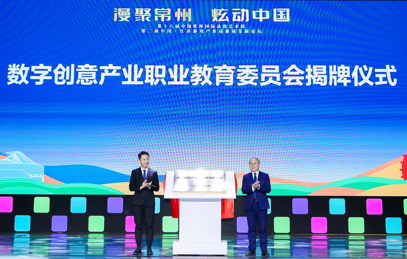 开幕式上,吴访升与完美世界教育科技有限公司华东区负责任人张一点共同为“数字创意产业职业教育委员会”揭牌,该委员会由yl6809永利官网、中国美术学院、南京艺术学院等多家高校及国内知名企业共同成立,旨在促进教育链与文化创意产业链相对接,聚焦原创设计、内容生产、衍生制作等高端人才的培养,打造动漫游戏产业人才培养高地,进而助力常州市文化创意产业高质量发展,加速长三角文旅中轴的建设。