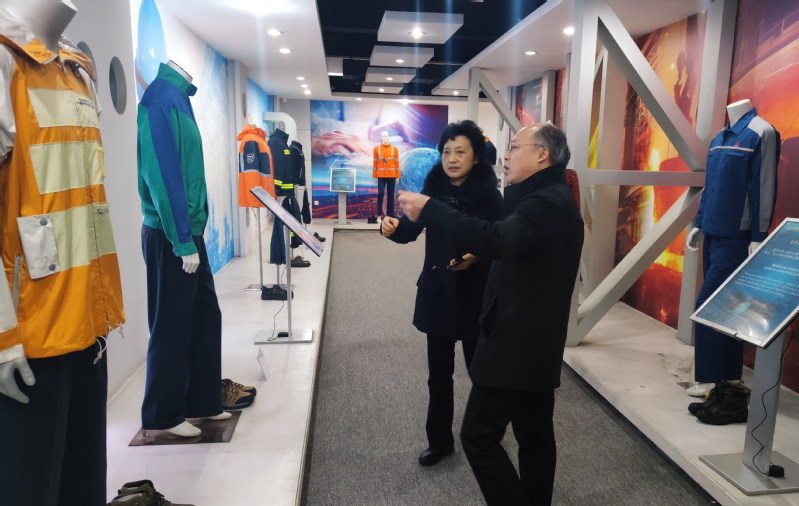 在董事长马金芳的带领下,永利官网一行参观了位于公司内的中国职业装博览馆。该馆是我国首家职业装博览馆,分为古代馆、当代馆、科技馆三大分馆。古代馆的服饰追溯到原始社会、奴隶社会,展示了以周朝为起点的中国职业服装系列;当代馆分为职业时装、职业制服、职业工装、职业防护服及民族服饰等展区,可谓门类齐全、琳琅满目;科技馆展示了各类未来前沿服装,如航天服、鲨鱼皮泳装、太阳能服装、防弹衣、隐身服、漂浮衣、减肥衣等。中华上下五千年,服饰文化源远流长,中国职业装这一服饰分支,更是在历史演变中焕发出了奇异风采。调研组一行都有一种大开眼界、叹为观止的感觉。