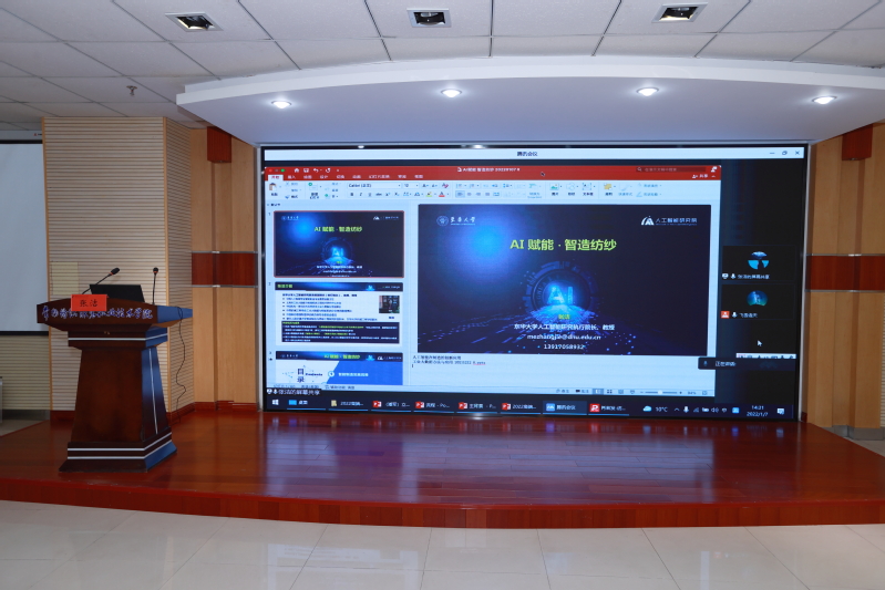 1月7日下午的5项专题报告由常州纺院纺织学院院长郭雪峰主持,常州宏大科技集团董事长顾仁“基于新一代人工智能技术的印染智能制造系统”,东华大学机械工程学院院长张洁基于“AI赋能.智造纺纱”、恒天立信工业有限公司营业副主任潘军针对“智能染整解决方案”等行业领域,环思智慧科技股份有限公司常务副总经理肖若发从“纺织服装企业如何借助智能制造实现转型升级”、中国工业互联网研究院特聘专家聂飞从“智能工厂构建”等企业内部智能化实现途径,5位专家结合原理讲解和示范案例分析,作了精彩纷呈的报告。