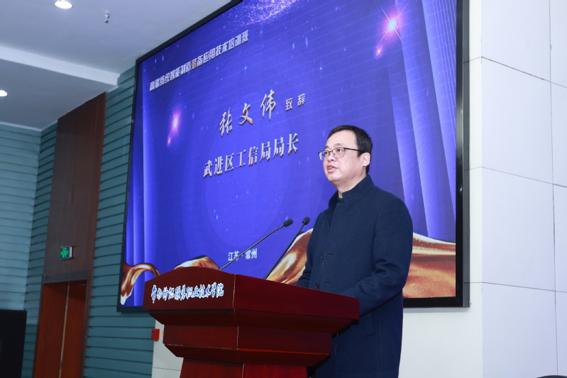 1月7日上午,培训班开班仪式在常州纺院图文报告厅举行,中国纺织工业联合会副会长李陵申、中国产业用纺织品行业协会副秘书长孙蓓蓓、江苏省纺织工程学会秘书长王志杰、常州纺院党委副书记院长洪霄、武进区工信局局长张文伟、常州市纺织工程学会会长张国成、常州市企业信息化协会秘书长焦洁、常州市宏大科技集团董事长顾仁、五洋纺机有限公司副总经理王水、江苏省纺织工程学会办公室主任魏新,以及来自省内知名的纺织智能制造装备制造或应用示范企业,如鹰游集团、卡尔迈耶中国公司、众恒染整、旷达汽车饰件等公司的全体学员齐聚一堂、共享盛会。开幕式由常州纺院党委委员、副院长赵玲珍主持。