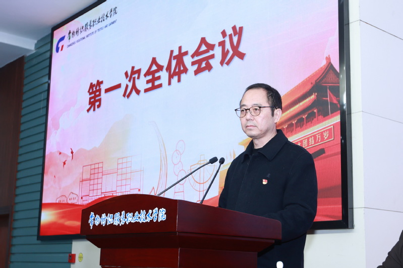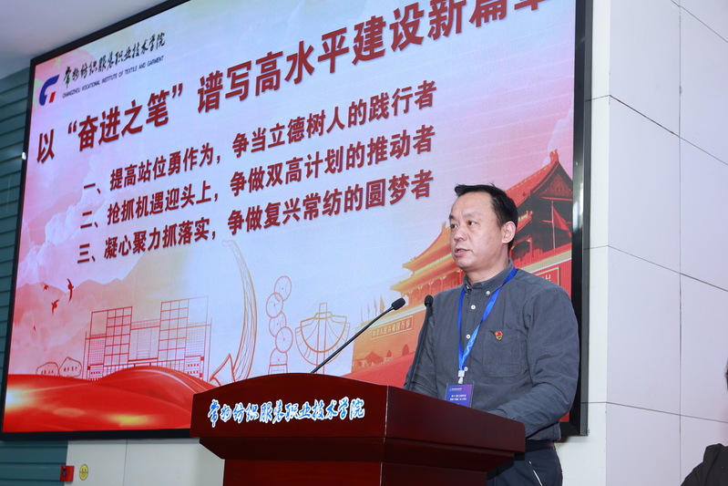 结合学校当前实际和未来发展,他提出:一要突出“人才是第一资源”, 筑牢高质量发展和高标准建设的基石,团结全体教职工众志成城奔向新征程;二要聚焦“创新是第一动力”, 打造质量自治和良法善治的引擎,推动内部治理体系迈上新台阶;三要坚持“学习是第一本领”,找准“经纬天地”和“袖里乾坤”人才培养路径,注入理论武装和本领能力新动能。最后,他要求全体代表,紧紧咬定奋斗目标,抢抓机遇、乘势而上,坚定信心、迎难而上,奋发作为、蓄势而上,大力弘扬奋勇拼搏、追求卓越、勇争第一的常纺精神,全力落实好“十四五”事业发展规划,创造更加灿烂的未来,实现常纺复兴梦!为谱写“强富美高”新江苏建设现代化新篇章贡献力量,以优异的成绩向党的二十大献礼。