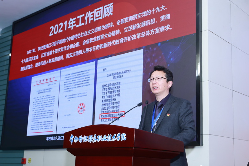 党委副书记、院长洪霄向大会作题为《守正创新 自立自强 建设中国纺织服装高职强校》的工作报告。洪霄指出,2021年学校围绕建设“现代化、国际化、智慧型、创业型”高水平高职院校目标,坚持党建引领高质量发展,统筹改革发展稳定与安全,坚持守正创新、改革创新、融合创新,学校政治生态得到好转,人才培养质量全面提升,师资引育成效不断彰显,服务发展动能日益增强,国际合作得到持续拓展,内部质量保证体系不断优化,民生保障水平日益精进,改革创新活力不断增强,学校成功入选江苏省中国特色高水平高职学校建设单位,实现了“十四五”良好开局。