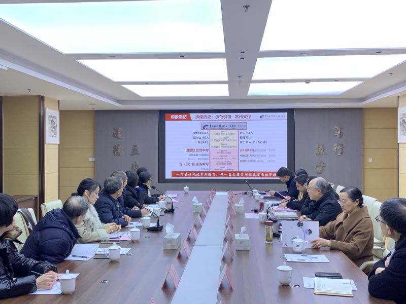 1月11日上午,常州老年大学常务副校长王亮伟、副校长薛二伟携相关职能部门和系负责人来学校调研交流,调研会在1646举行。学校党委书记吴访升,党委委员、副院长赵玲珍,教务处、继续教育处、文化与传承创新中心、创意学院、服装学院和人文学院负责人参加交流。会议由吴访升主持。