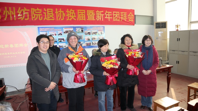 团拜会现场,离退休工作处处长胡艳妹、党政办主任赵振勇为七十岁生日的退休教师送上鲜花和生日祝福。退休教师代表、老校长金小坡代表离退休教师发言,感谢学校对老同志的关心,祝贺学校一年来取得的成绩,祝福学校在党委的领导下一天更比一天好。