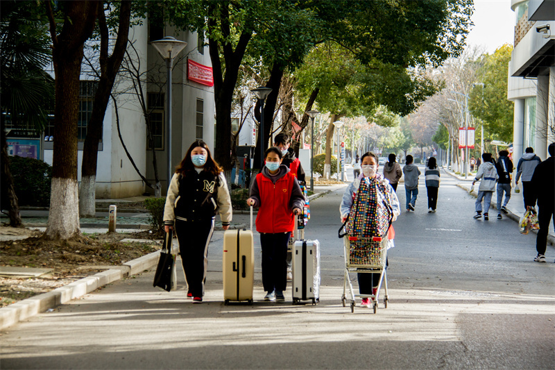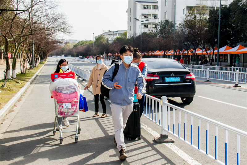为方便同学们顺利返回宿舍,学校安排了“一对一”的志愿服务,志愿者们宣传防疫健康知识、搬运行李物品……用亲切的笑容和贴心的服务迎接每一位返校学子的归来。宿舍阿姨们则提前帮助有需要的同学开窗透气、晾晒床褥。老师们的悉心关切、学校的暖心举措,让返校归来的学子倍感温暖。