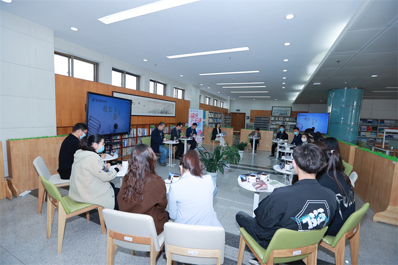 为了充分激发学生的阅读热情,提升图书馆读者服务质量,3月9日下午13:30,永利官网第11期“校长下午茶”活动在图书馆二楼期刊阅览室举行,学校党委副书记、院长洪霄,党委委员、副院长张震宇,图书馆馆长马晓明与来自各二级学院的8名学生代表和6名新辅导员代表互动交流,活动由学生工作处处长李洁琦主持。