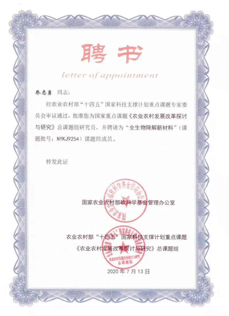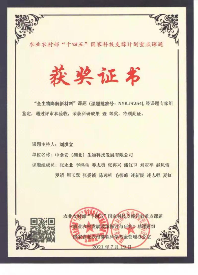 “全生物降解新材料”项目为农村农业部“十四五”国家科技支撑计划重点课题,2021年7月,该项目经课题专家组鉴定,通过评审和验收,获得科技成果壹等奖。项目团队历经近十年的自主研发,以麦草、玉米秆、甜高粱秆、稻草、棉秆、生活废弃物等可再生资源为原料,采用世界领先的弱碱性处理方法以及其他环保工艺,加上拥有多项发明专利的核心技术,生产出全生物降解材料,广泛应用于生物基能源、材料、医药等三十多个行业。这种材料生产过程中不会产生任何污染,还可随着生产流程的不断推进萃取出多种微量元素,而且使用废弃后,在自然的土壤条件下,能被自然界的生物酶降解为二氧化碳和水,做到零残留、零污染,从源头上解决了秸秆焚烧造成的“黑色污染”和不可降解塑料制品带来的“白色污染”问题。在提案中,马国湘委员提出了“不断完善全国范围的全生物降解材料产业标准体系、实施试点推行法、加大政策扶持和资金支持力度、支持技术融合创新攻关,支持推广应用”的建议。