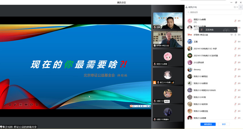 3月23日下午,北京修证公益基金会理事长许琼林作客职业素养大讲堂开讲,近300余名学生通过线上参加了讲座。讲座由创业学院副院长王磊主持。