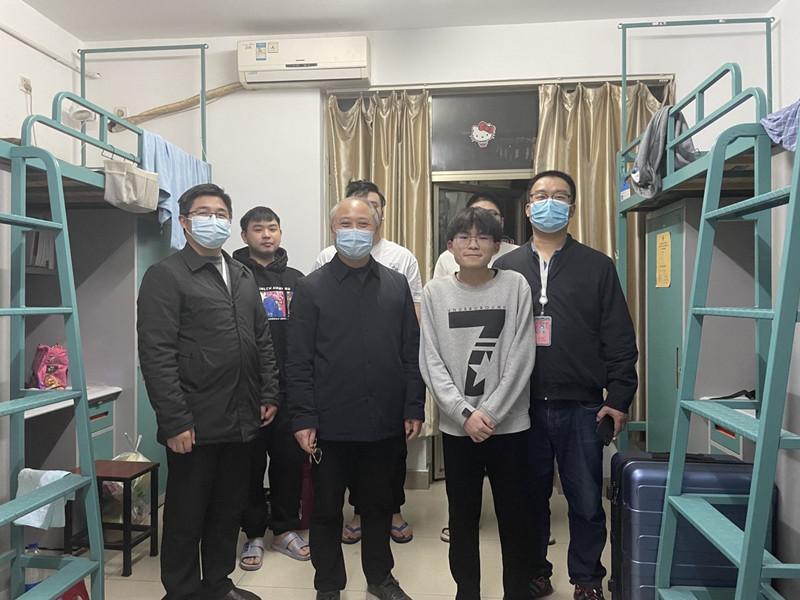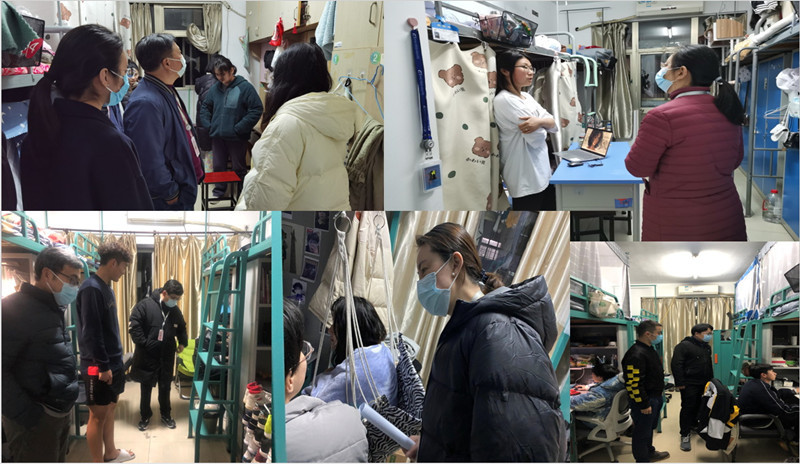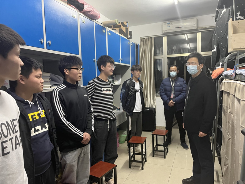 走进学生宿舍,校领导与同学们亲切交谈,认真倾听同学们对学校工作的意见和建议,了解关心他们的生活用品和防疫物资准备情况、身体健康状况、线上学习效果等,再三叮嘱同学们要严格遵守学校疫情防控各项规定,切实做好个人防护,戴口罩、勤洗手、少聚集,及时清扫宿舍,维持良好的宿舍环境。每到一处,巡查的领导和老师们都提醒同学们要积极调整心态,养成良好的生活习惯,按时认真完成学业任务,做到学习成长“不断线”。