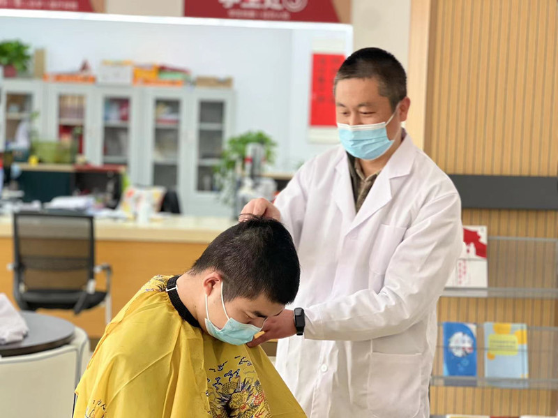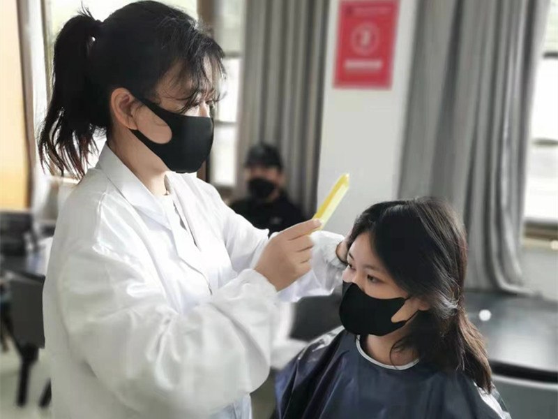 活动一经发出,即有一百余名同学报名。理发现场严格按照疫情防控要求,所有人员需佩戴口罩,保持安全距离,体温监测、消毒处理每一个环节都不能少。推剪、打薄、修边……活动现场,“理发师们”耐心询问“小客人”对发型的要求后,便认真娴熟地修剪起头发来。伴随着剪刀、电动理发器的咔嚓声、嗡鸣声以及“理发师”与学生们和乐融融的谈笑声,学生们原本凌乱的头发变得干净利落,面容也精神了许多。