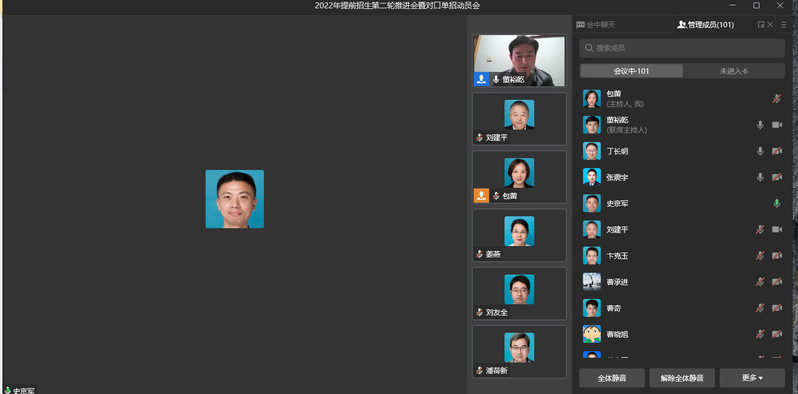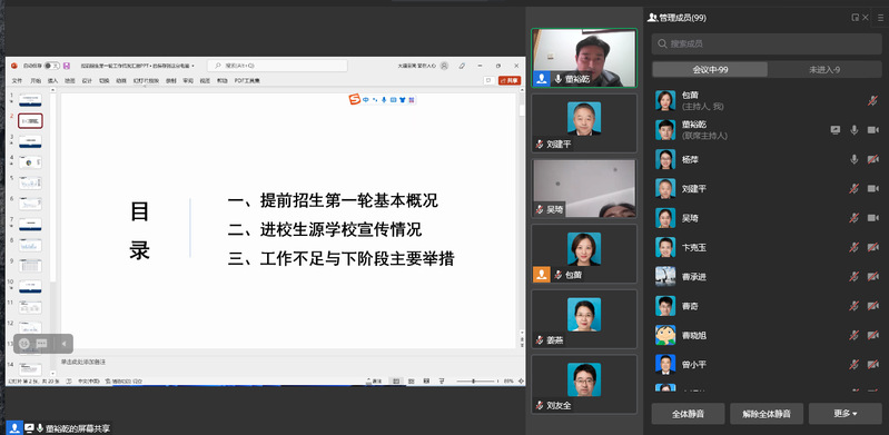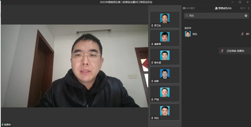 2022年3月28日下午3:30,永利官网招就处通过企业微信召开2022年提前招生第二轮推进会暨对口单招动员会,校党委委员、副院长张震宇、各二级学院党总支书记、职能部门负责人、全体招生专员参加了会议,会议由招就处处长董裕乾主持。