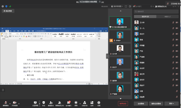 会上,首先服装学院和机电学院副院长就常纺--佰奥服装智慧工厂项目概况及重要意义分别做了介绍。张文明介绍了智慧工厂组织机构、工作职责推进安排。赵玲珍提出后勤部门要积极配合基建装修,为项目推进做好后勤保障工作。