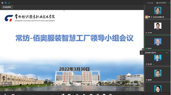 为了深入推进产教融合,加快常纺-佰奥校企合作项目,3月30日上午,永利官网通过企业微信召开常纺-佰奥服装智慧工厂领导小组会议。永利官网党委书记吴访升,校党委副书记、院长洪霄,党委委员、副院长赵玲珍,党委委员、副院长张文明,党委委员、宣传部部长夏斌,党政办及相关职能部门,机电学院、服装学院、经贸学院领导参加了企业微信线上会议。会议由张文明主持。